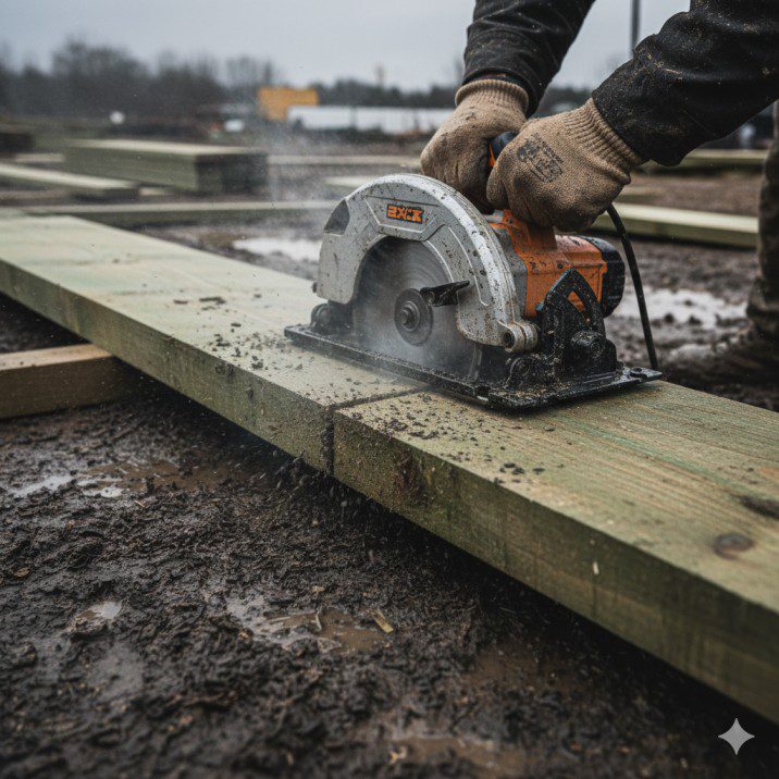 Framing lumber isn’t kiln-dried cabinet wood. It’s often still wet from the lumberyard, and pressure-treated deck lumber is even worse—heavy, resin-soaked, and tough to cut.