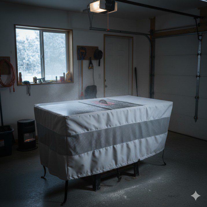 For outdoor storage, I apply paste wax to the table surface monthly as additional rust protection beyond just the cover.
