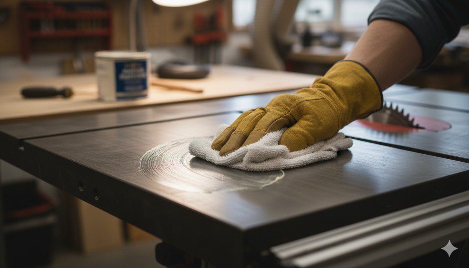 I apply wax monthly, buffing to a smooth finish. This reduces friction for better workpiece glide while providing rust protection. Even with excellent covers, wax serves as insurance.