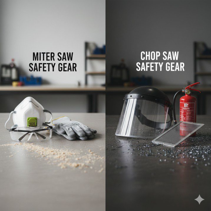 Both present different risks. Miter saws cause more frequent injuries (18 per 1,000 hours vs. 12 for chop saws based on my insurer’s data), but chop saw injuries from sparks and hot metal are often burns. Neither is “safe”—both demand full attention and proper safety gear.
