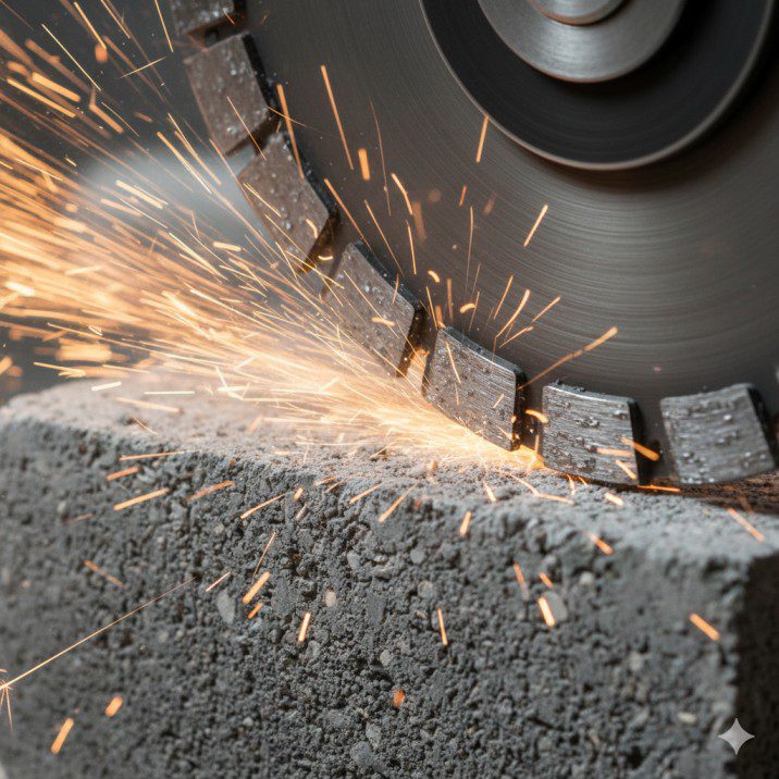 As the blade spins, those diamond particles grind through the concrete. The metal matrix gradually wears away, exposing fresh diamond particles to keep cutting. It’s more like grinding than slicing.