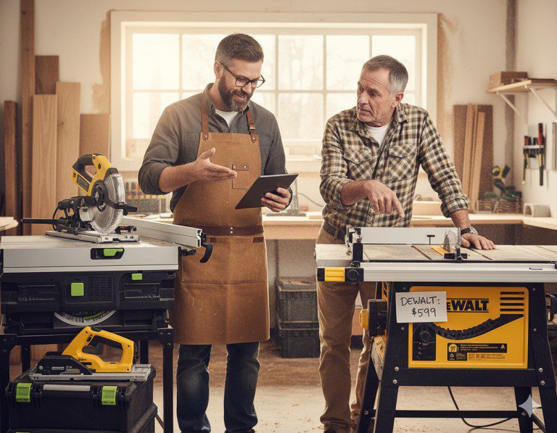 General contractors, framing carpenters, and DIY woodworkers should look at DeWalt’s DWE7491RS, Bosch’s GTS1031, or Skil’s jobsite saws. These tools provide excellent cutting performance, adequate dust collection, and professional build quality at prices that won’t require justification to your accountant. The DeWalt DWE7491RS particularly shines with its 32-inch rip capacity, rolling stand, and sub-$700 pricing.