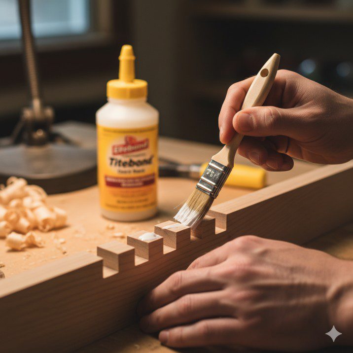 Standard yellow carpenter’s glue (PVA) works well for interior projects. The multiple glue surfaces in box joints create exceptional strength—Fine Woodworking testing showed properly glued box joints often fail in the wood rather than the glue line. For outdoor projects, use Titebond III or similar waterproof formulations.