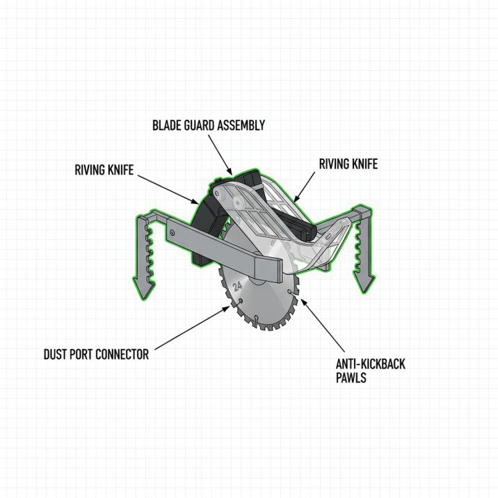 Sawdust and resin buildup on the table and fence faces cause friction and affect accuracy. Clean these surfaces regularly with mineral spirits or dedicated table saw cleaner. Apply a light coat of paste wax to keep things sliding smoothly.