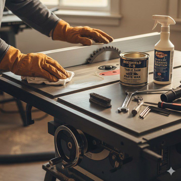 Keep the table surface clean and occasionally apply a coat of paste wax to reduce friction and prevent rust. The miter slots and adjustment mechanisms benefit from periodic cleaning and light lubrication—just don’t overdo it with oil, which attracts sawdust and creates a gummy mess.