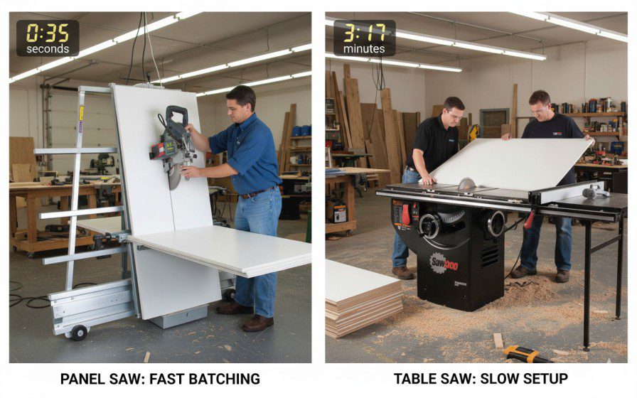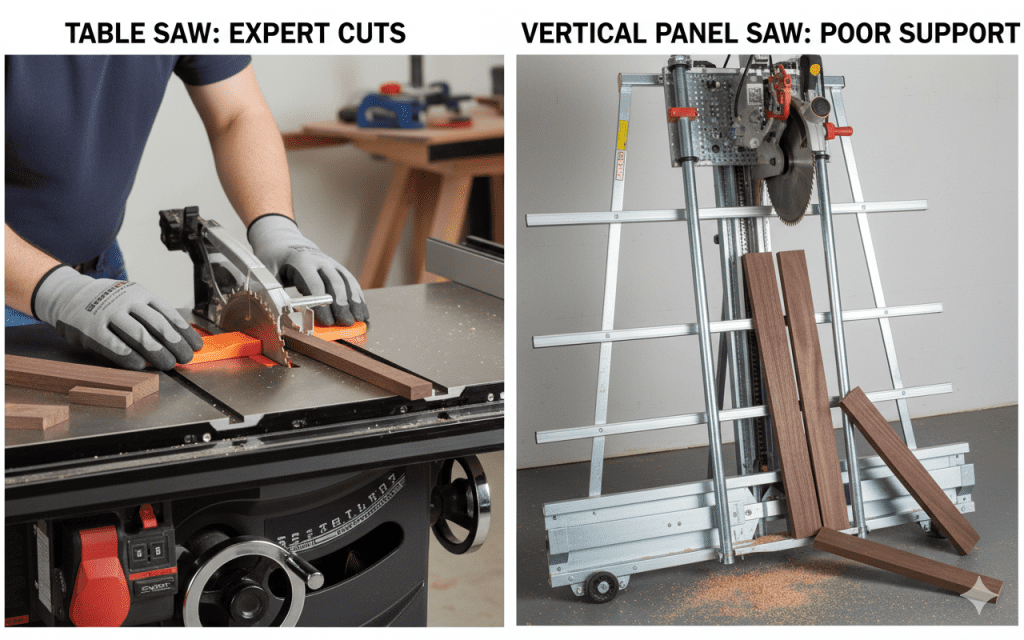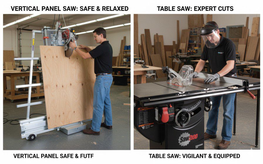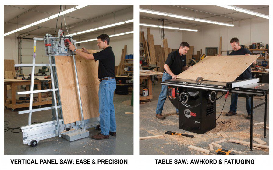 I helped a friend set up his new cabinet business last year. We were choosing between a quality table saw or an entry-level vertical panel saw for the same $2,500 budget. I pushed for the table saw—more versatile, better known, safer bet, right?