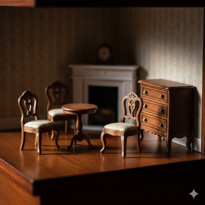 Challenge: Creating period-accurate Victorian dollhouse furniture with components as small as 1/4″ x 1/8″