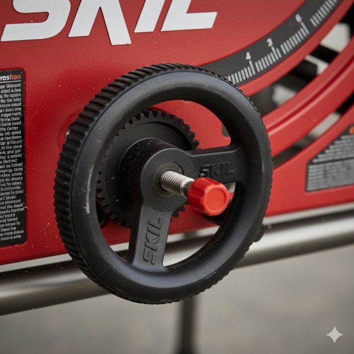 The riving knife adjusts without tools—a feature I use constantly when switching between different blade heights. It’s properly aligned out of the box and has maintained that alignment through dozens of blade changes.