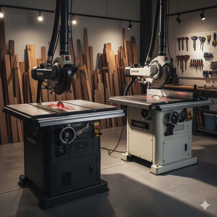 This was one of the most interesting comparisons I’ve conducted. The Harvey table saws vs SawStop saws matchup isn’t just about features—it’s about fundamental philosophy. Harvey builds traditional cabinet saws with exceptional fit and finish, while SawStop revolutionized the industry with flesh-sensing safety technology.