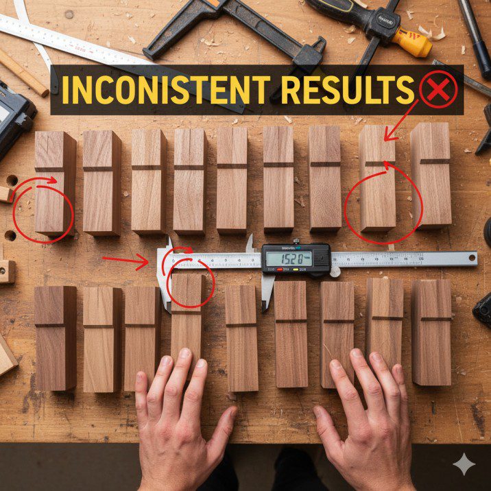• Inconsistent pressure: Even slight tilting creates tapered tenons