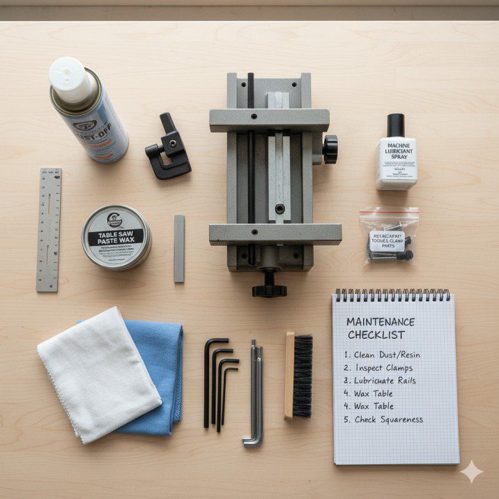 Check Clamp Operation: Toggle clamps and threaded clamps can develop play. Replace any worn components immediately—clamp failure during cutting is dangerous.